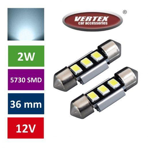 Avto LED žarnica (sijalka) C5W 36mm 3 SMD 5730 CANBUS 2W 2 kosa