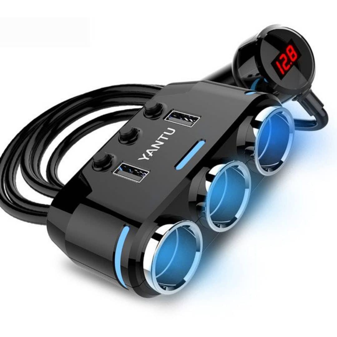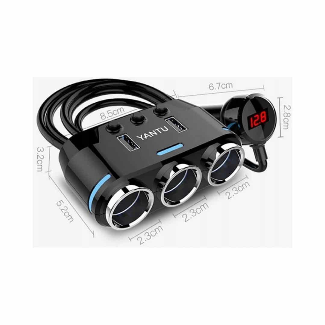 Avto razdelilec z LCD merilnikom napetosti 3 + 2 USB