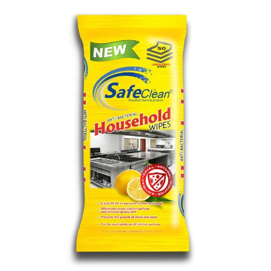 Antibakterijski vlažni robčki za gospodinjstvo 50 kos z vonjem limone