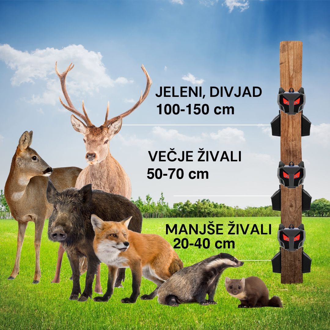 kot so kune, lisice, jeleni, srne, divji prašiči ipd. Priporoča se uporaba na manjših površinah, kot so zelenjavni vrtovi, kurniki, vozila in majhna kmetijska polja.