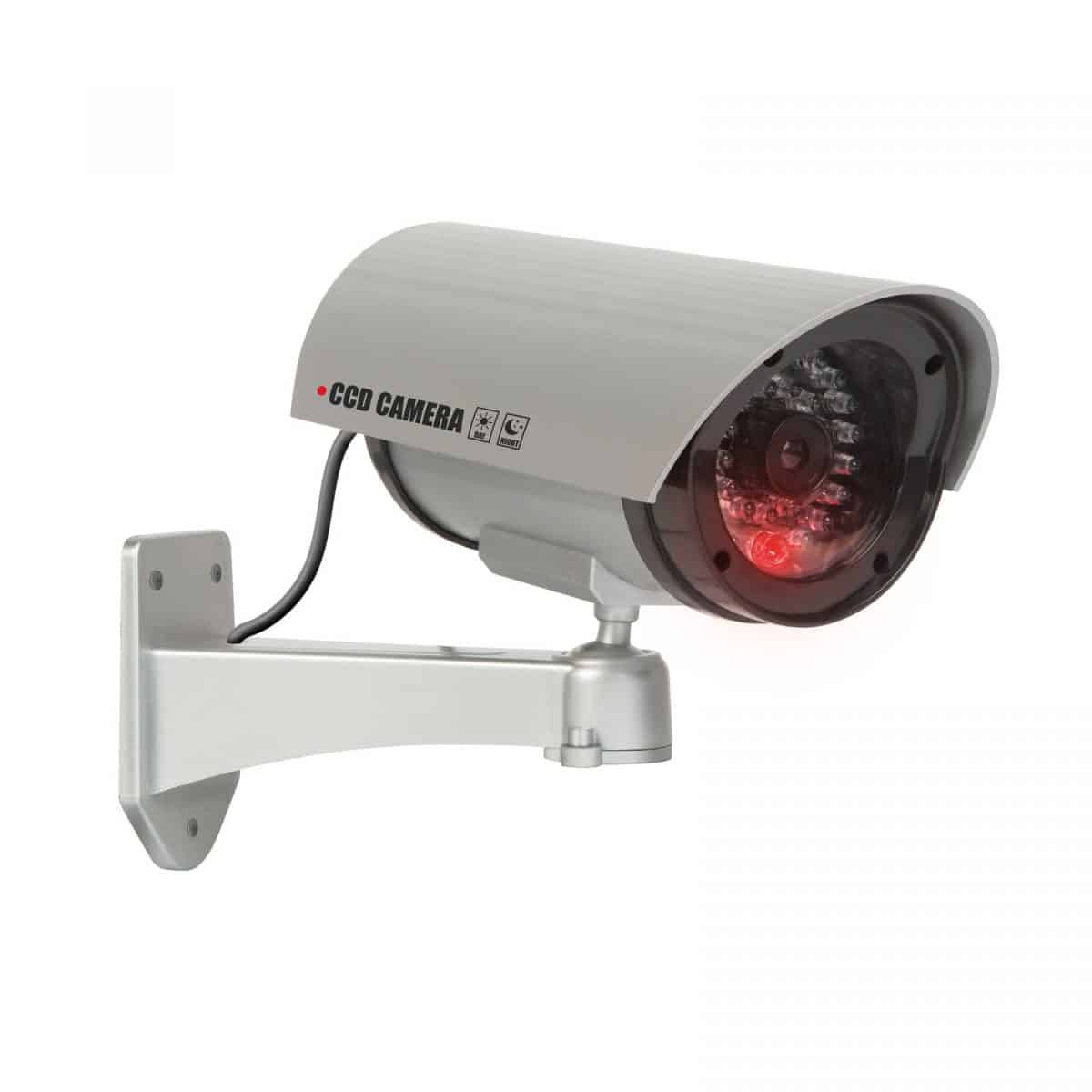 Stenska varnostna slepa lažna kamera realističnega videza z LED diodo 2 x AA baterija srebrna