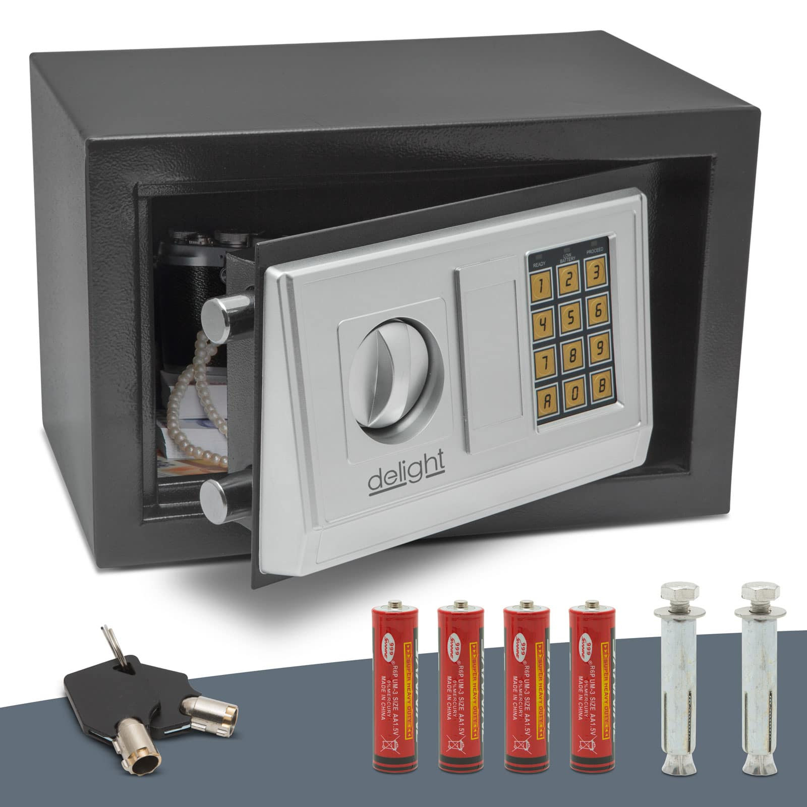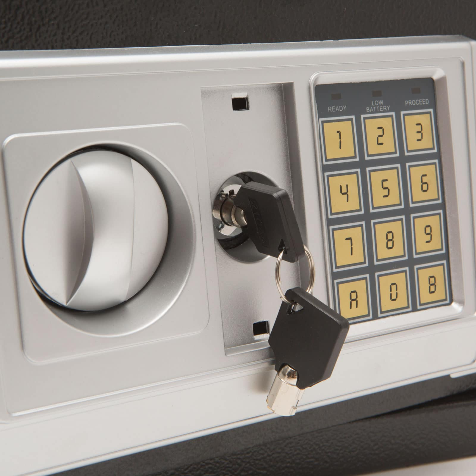 Varno shranite dragocene predmete, nakit, denar, potni list, itd. v tem kompaktnem in močnem sefu. Varnost vaših predmetov je zaščitena s kodo PIN ali ključem. Varnostna koda je lahko 3- do 8-mestno zaporedje v popolnoma edinstveni kombinaciji številk. Če pozabite PIN kodo, lahko sef odprete tudi z glavnim ključem. Lastnosti izdelka: - možnost pridtrditve na steno, - 90 ° odpiranje vrat s tečaji na desni strani, - enosmerna zapora s 16 mm jeklenimi palicami, - digitalna ključavnica s 3-8-mestno kodo PIN, - po treh neuspešnih vnosih PIN kode, se ključavnica zablokira za 5 minut, - ključ.