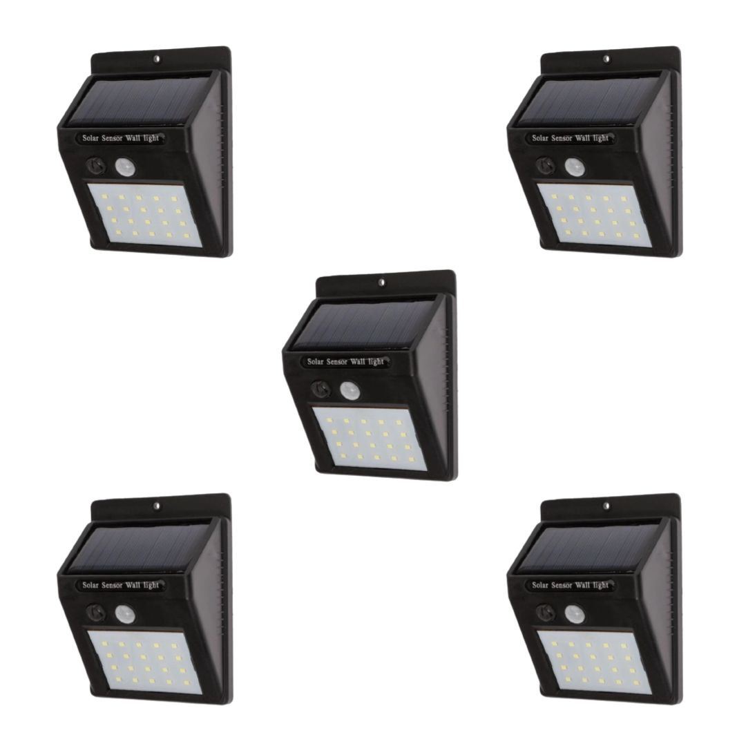 5 x stenska solarna svetilka 20 LED 200lm s senzorjem gibanja in mraka