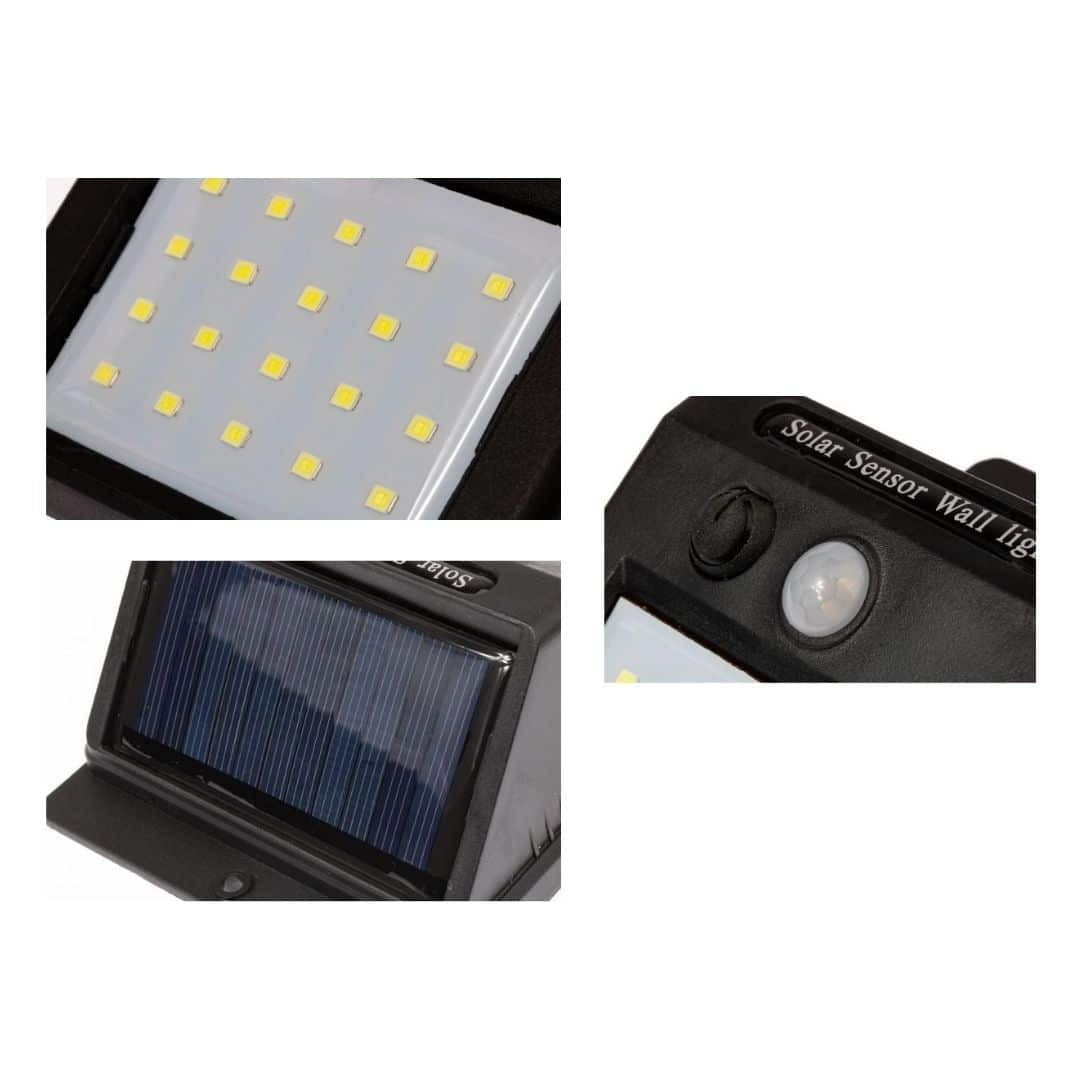 LED solarna svetilka s senzorjem za mrak in senzorjem gibanja v črni barvi, opremljen s solarnim panelom je moderna razsvetljava, ki jo odlikuje zelo dobra kakovost oddane svetlobe in visoka trpežnost. Profesionalna izdelava in uporaba najnovejše LED tehnologije omogočata, da predstavljeni reflektor izpolni svojo nalogo tudi v najtežjih pogojih. Zaradi kompaktnih dimenzij in majhne teže omogoča enostavno namestitev namesto starih, dotrajanih in močnih halogenskih reflektorjev. LED reflektor je opremljen z energetsko varčnimi LED diodami (20xSMD 2835) z močjo 3W, hladno bele svetle barve z barvno temperaturo 5500-6000K, pri tem pa oddaja približno 200lm svetilnosti. Reflektor ima senzor gibanja in mraka s kotom zaznavanja 120 ° in razdaljo zaznavanja 3m. Čas delovanja: približno 8 ur Čas polnjenja: približno 5-6 ur na soncu Ko zazna mrak, reflektor preide v stanje pripravljenosti in je izključen, po zaznavanju gibanja pa se vklopi s 100% svetlostjo. Solarna LED svetilka je inovativna naprava, ki jo lahko uporabljate na prostem, na primer na fasadi stavbe, garaže ali na steni. Uporabljeni materiali omogočajo zelo dobro zaščito pred vremenskimi vplivi (IP65), kot so voda, prah ali umazanija. Zahvaljujoč temu reflektorju lahko zlahka osvetlimo različne površine, zgradbe, hkrati pa poudarimo njihovo posebnost, jih naredimo lepše in privlačnejše.