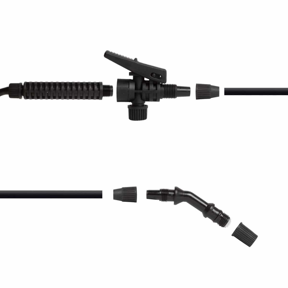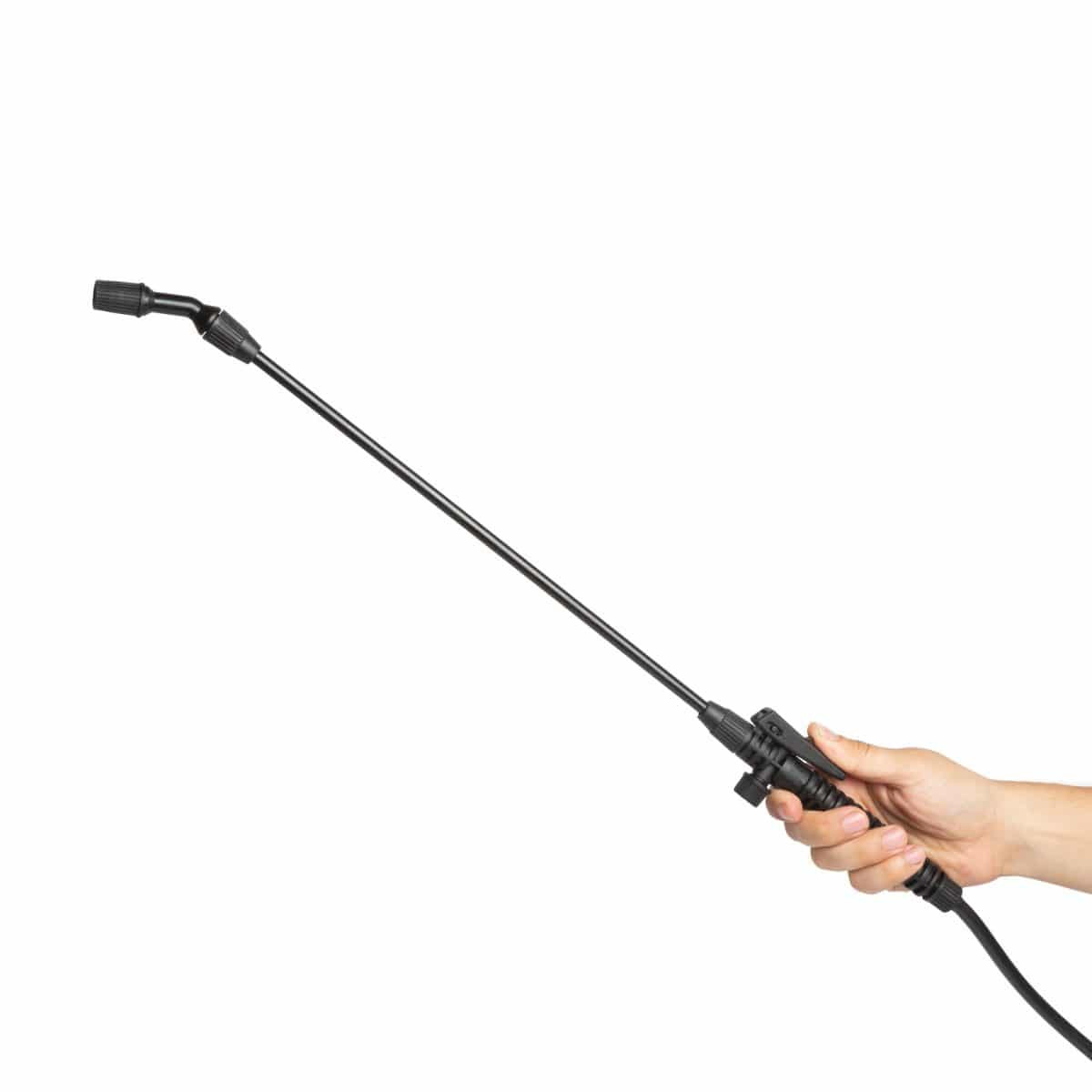 Ročni razpršilec z nastavljivo brizgalno šobo in varnostnim ventilom. Primeren je celo za mešanje in pihanje kemikalij. Za udobno uporabo ga lahko obesite na ramo, saj ima podaljšek pršilke. Uporabo prave količine kemikalije in količino škropljenja lahko nadzorujete z obračanjem brizgalne glave in ročice. S pritiskanjem in potiskanjem vrtljive roke je brizganje neprekinjeno, zato ročice ni treba držati pritisnjeno do konca. Zahvaljujoč velikemu ergonomskemu ročaju lahko želeni tlak dosežete enostavno in hitro. Prozoren, skaliran rezervoar omogoča sledenje izčrpavanju kemikalij.