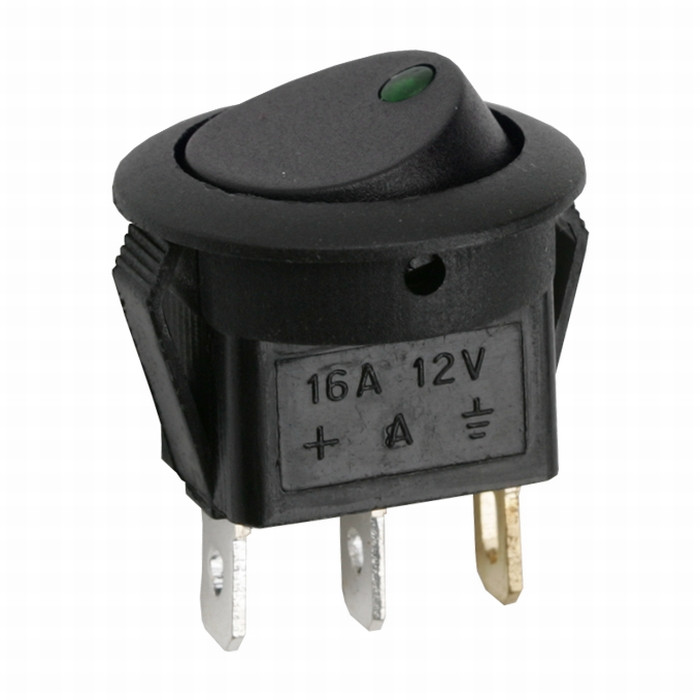 Široko uporabno okroglo oblikovano črno stikalo. LED indikator prikazuje, ko je stikalo vklopljeno. Idealno področje uporabe: električna oprema in vozila.