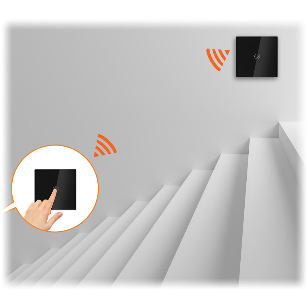 Brezžična komunikacija med stikali vam omogoča, da prižgete luč in se povzpnete po stopnicah, nato pa jo ugasnete, ko pridete na vrh, in obratno! Moderno, minimalistično stikalo za luči iz kaljenega stekla. Zaradi elegance in vzdržljivosti je ta izdelek primeren za vsak prostor v vašem domu.