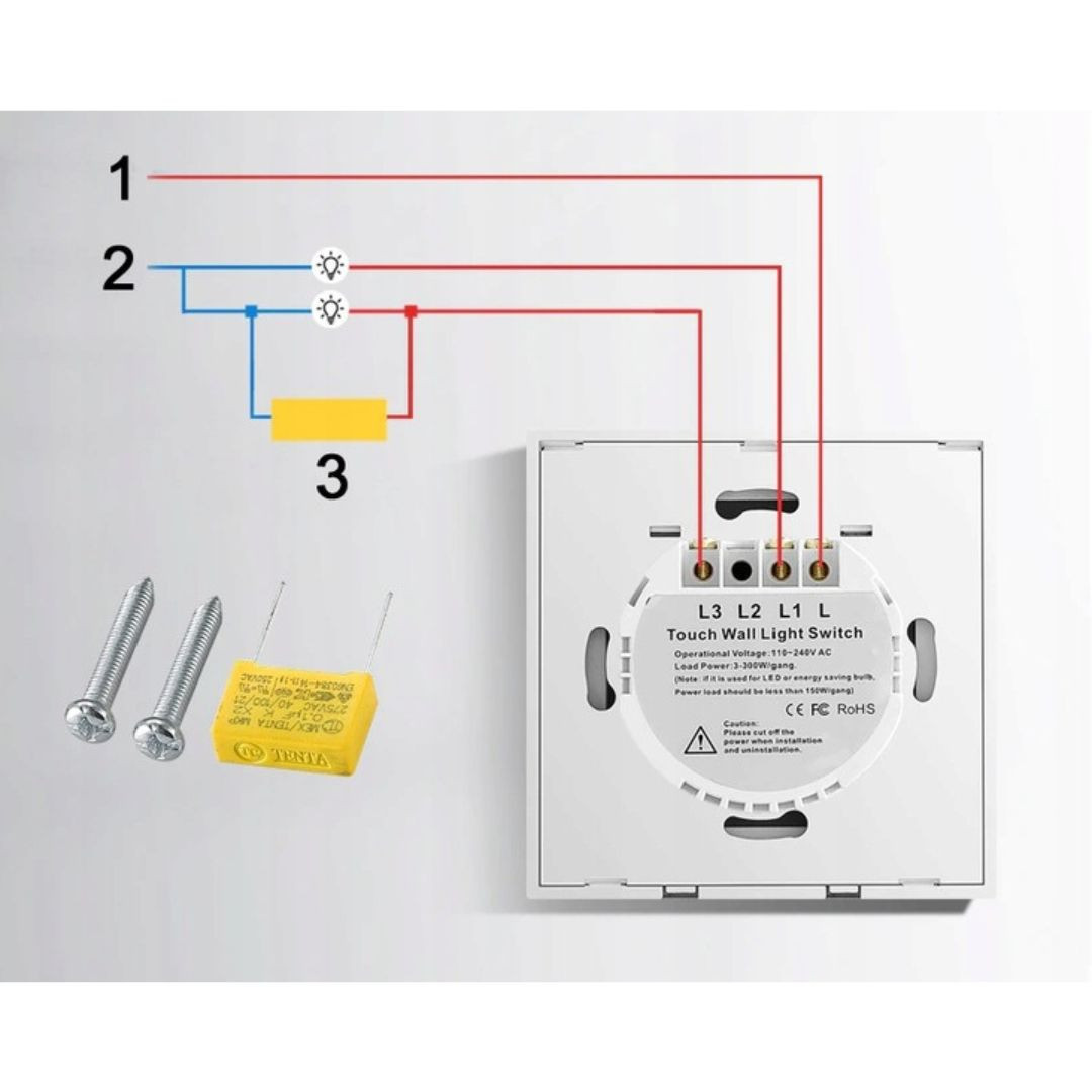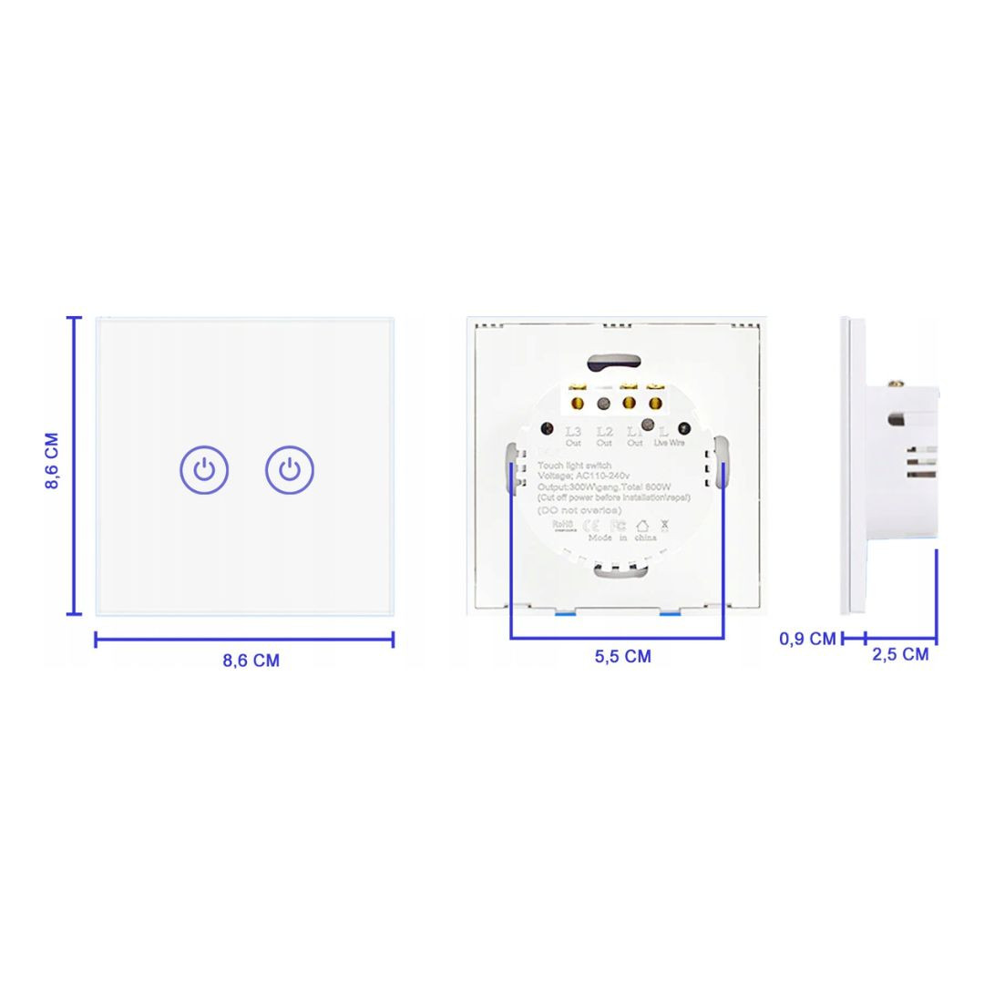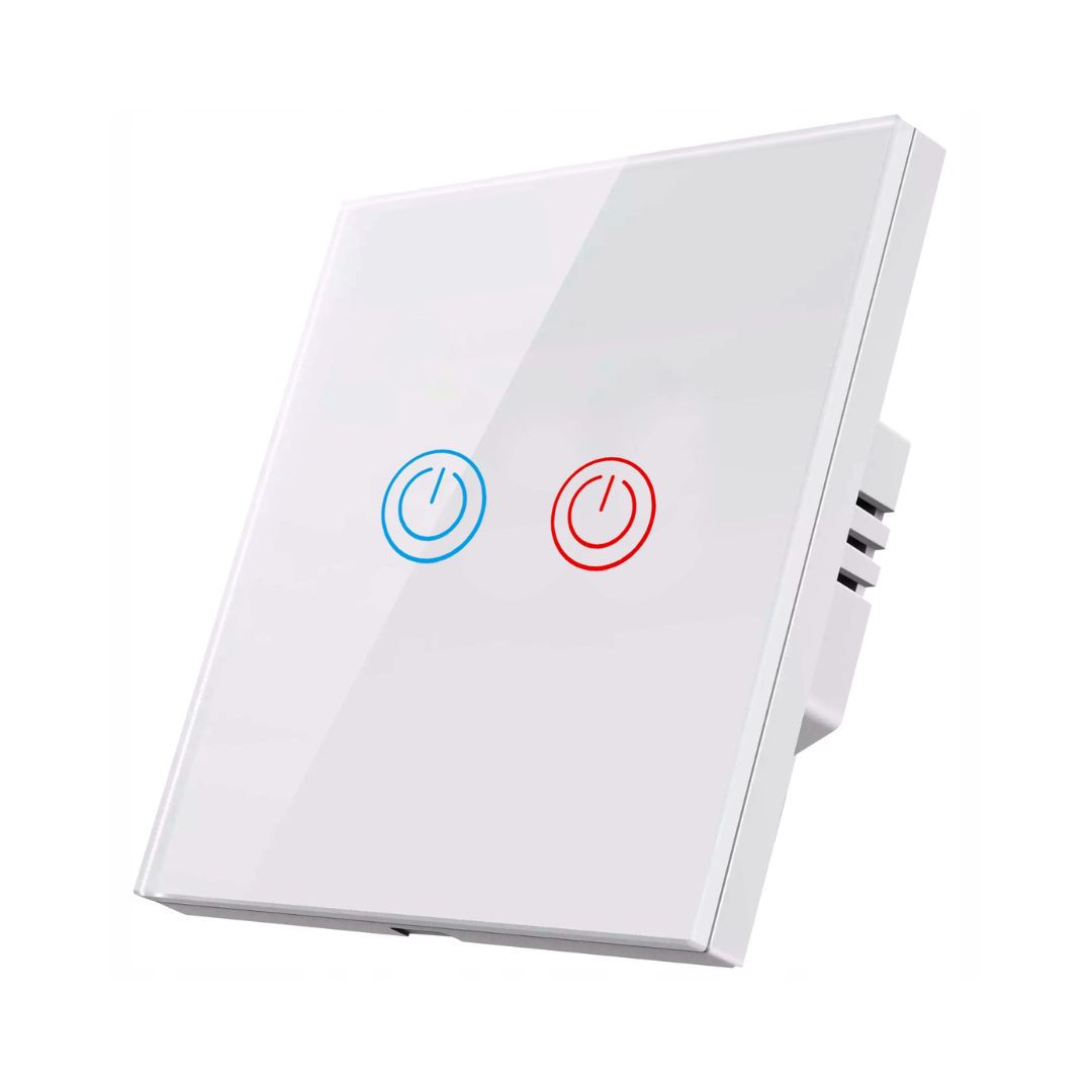 Stekleno stikalo na dotik dvojno vgradno belo z LED indikatorjem