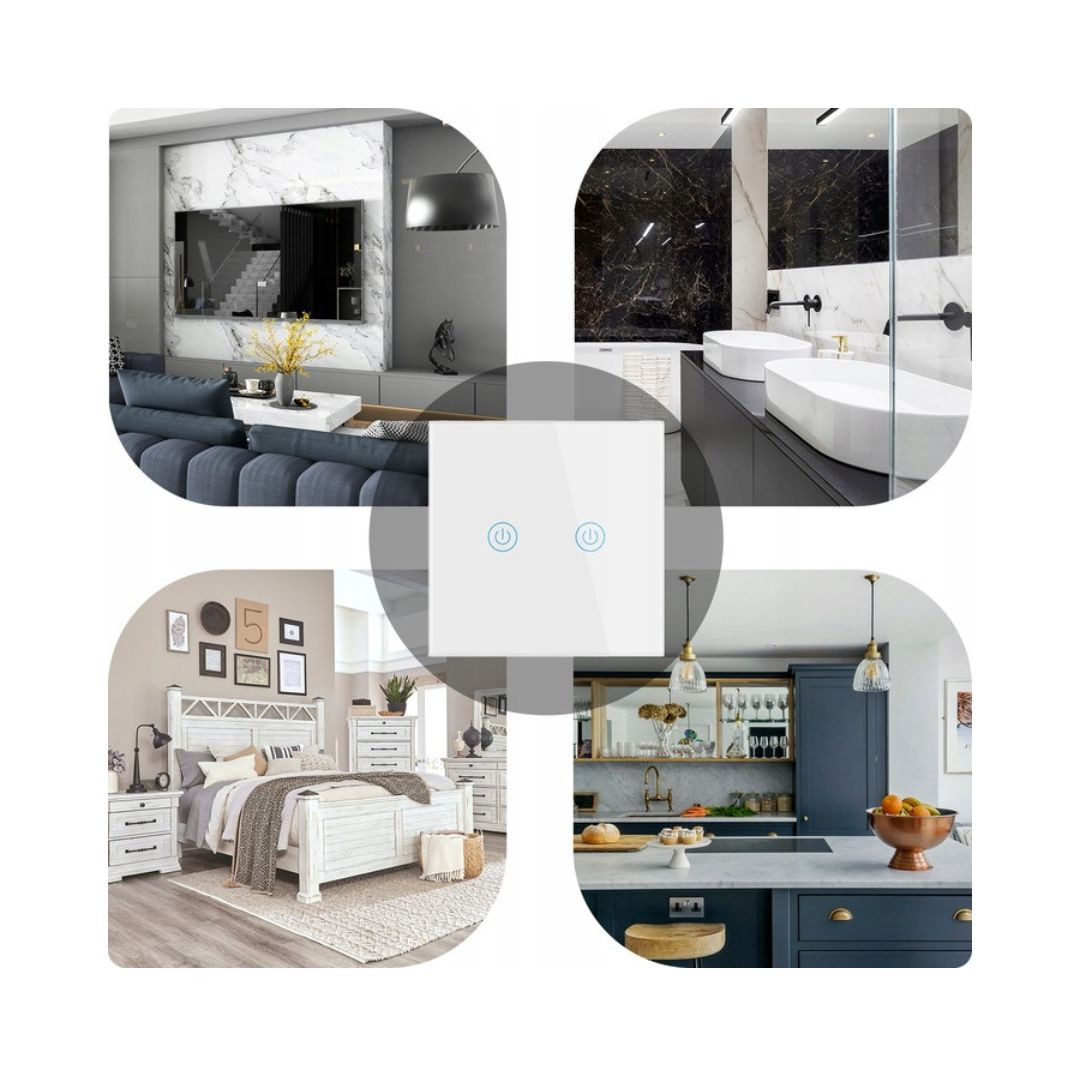 Stikalo deluje enako kot klasično stikalo, z eno pomembno razliko. Porabnika prižigamo in ugašamo z dotikom označenega mesta. Steklena plošča ima barvno osvetlitev gumbov na dotik. Ko je porabnik prižgan, gumb sveti v nežni modri barvi, zaradi katere boste veliko lažje našli stikalo v temi, ko je porabnik izklopljen, sveti rdeče. Senzor na dotik je zelo občutljiv, za prižig ali izklop porabnika ni treba močno pritiskati na stikalo – dovolj je le nežen dotik. Plošča na dotik iz kaljenega stekla v kombinaciji z osvetljeno ikono poskrbi, da se to stikalo prilega vsakemu interierju. Stikalo je popolnoma zaščiteno pred škropljenjem, zato ga lahko brez težav uporabljamo v vsakem prostoru.