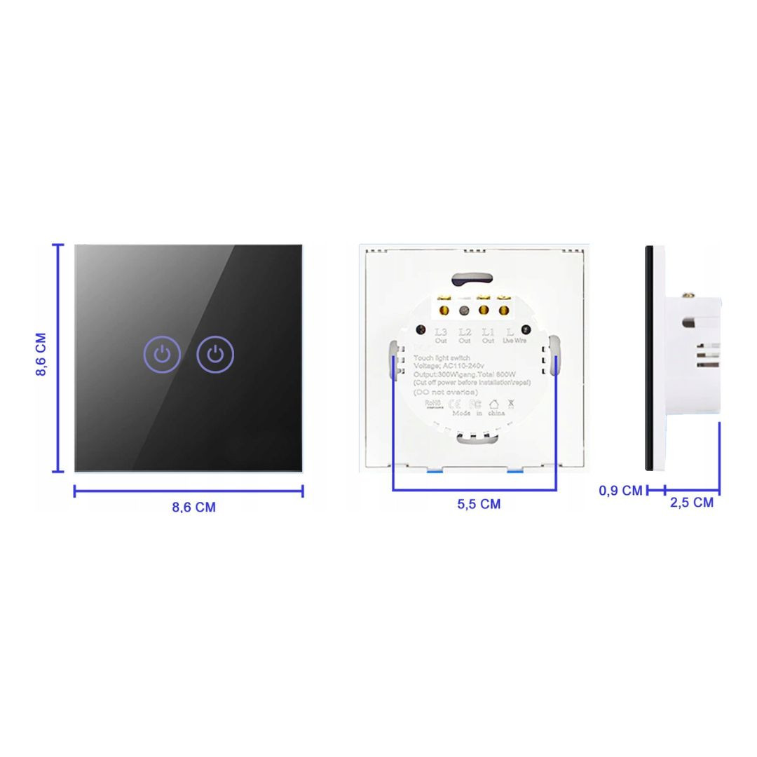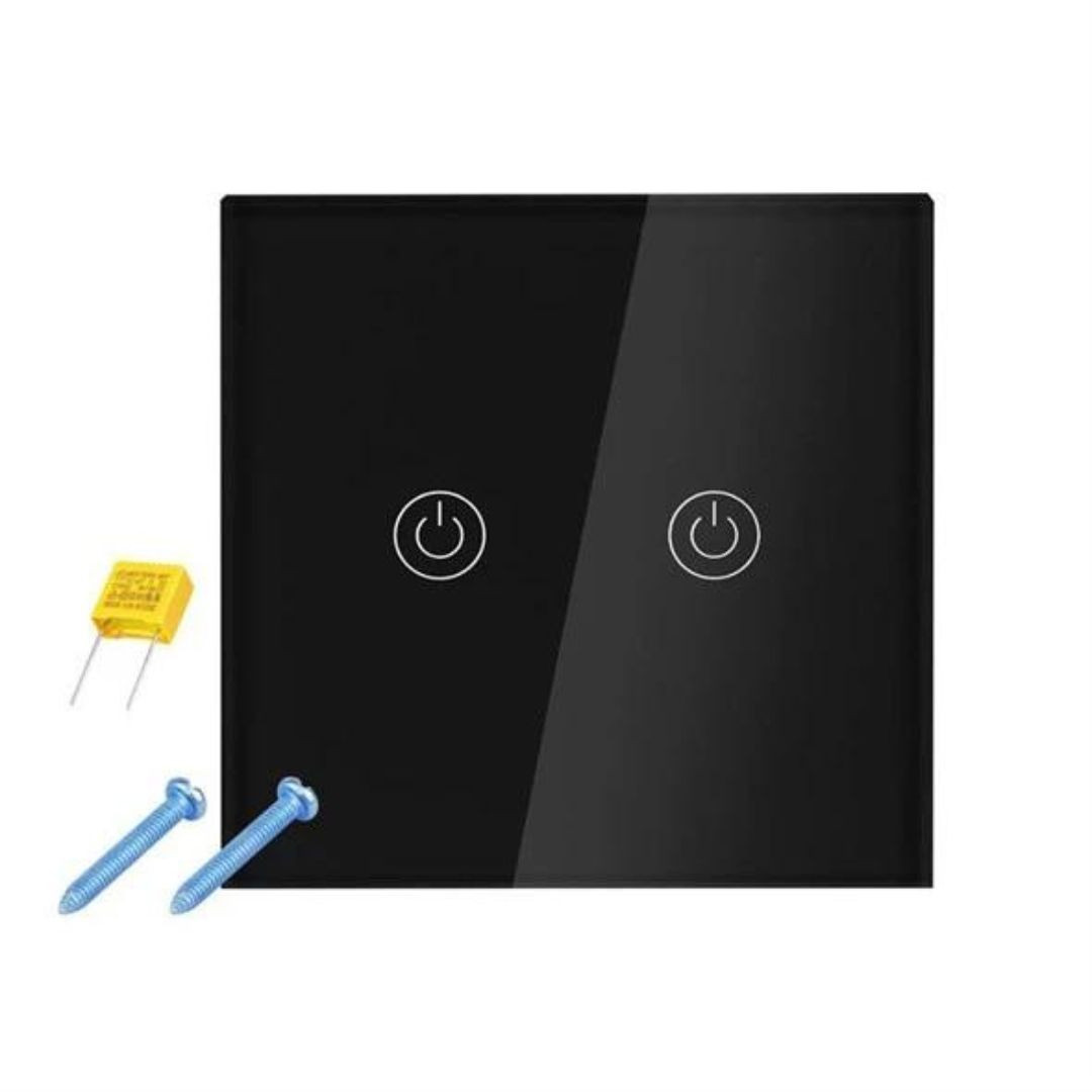 Stekleno stikalo na dotik dvojno vgradno črno z LED indikatorjem