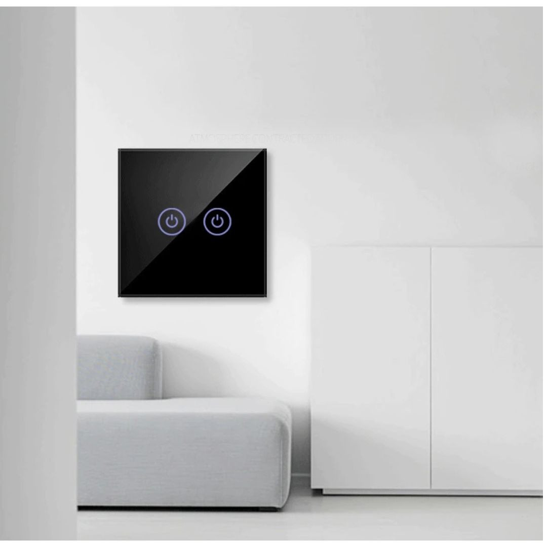 Plošča na dotik iz kaljenega stekla v kombinaciji z osvetljeno ikono poskrbi, da se to stikalo prilega vsakemu interierju.