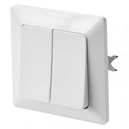 Križno stikalo dvojno vgradno z okvirjem belo
