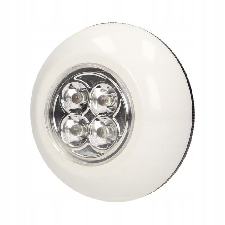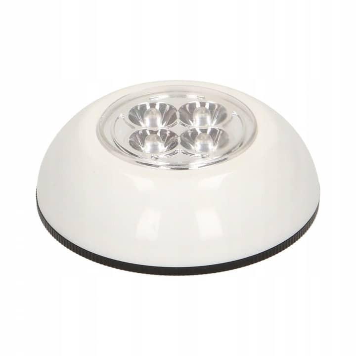 Svetilka na potisk s 4 LED diodami. Zahvaljujoč energijsko varčnemu viru svetlobe ter odsotnosti kablov bo svetilka idealen vir svetlobe na primer v garderobni omari, kuhinji ali spalnici. Pritrdi se z lepilnim trakom, tako da jo lahko postavite kjerkoli potrebujete vir svetlobe. Zanjo je značilna nizka poraba baterije z znatno močjo osvetlitve. Vklopi se s pritiskom na lučko.