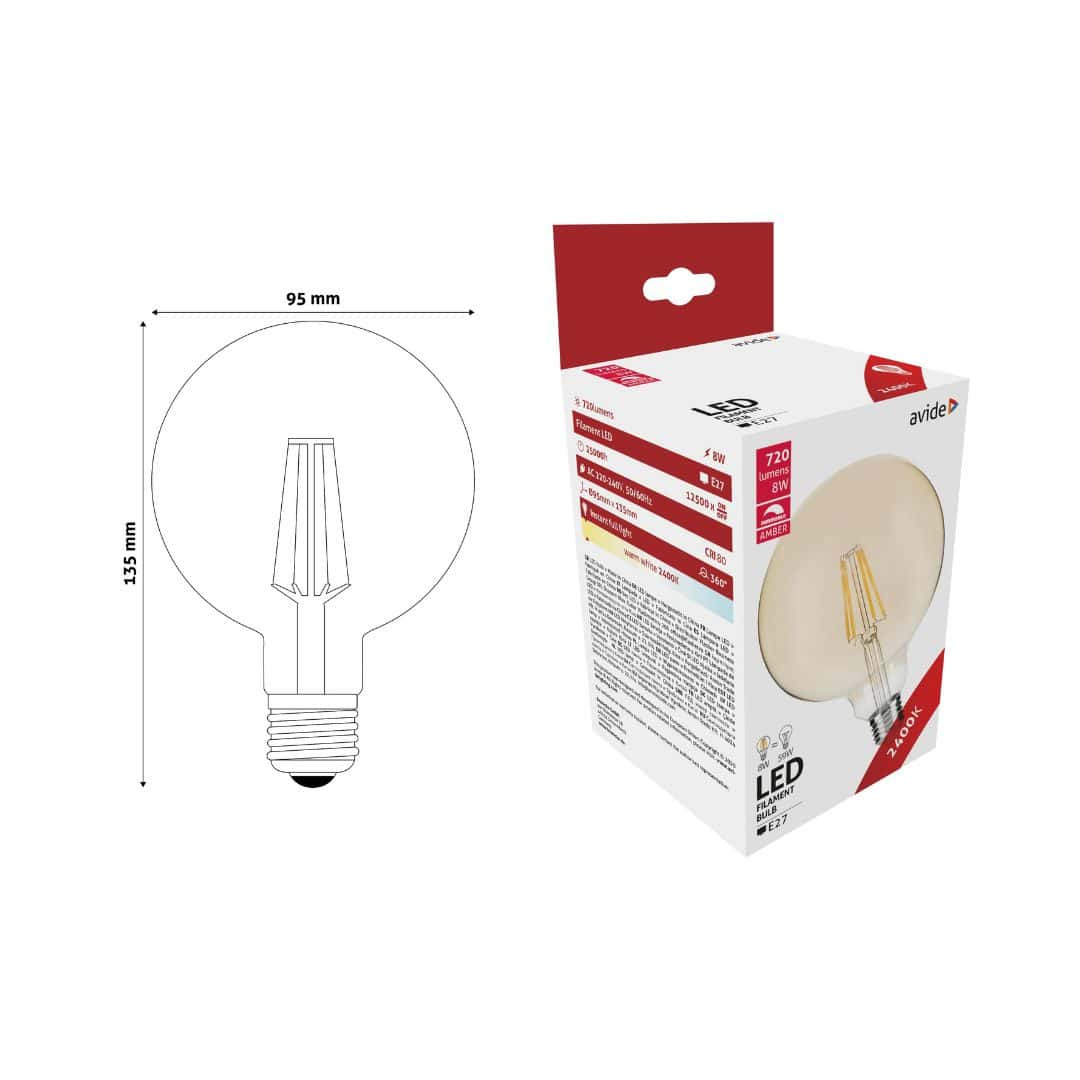 LED sijalka E27 G95 8W RETRO 2400K zatemnljiva