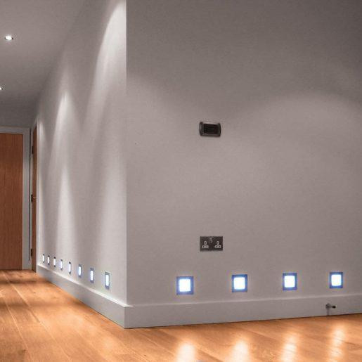 Vgradna stenska svetilka okrogle oblike, izdelana iz materiala odpornega proti udarcem, UV-žarkom in rji. Vključena je učinkovita LED svetilka GX53 3W-350lm.