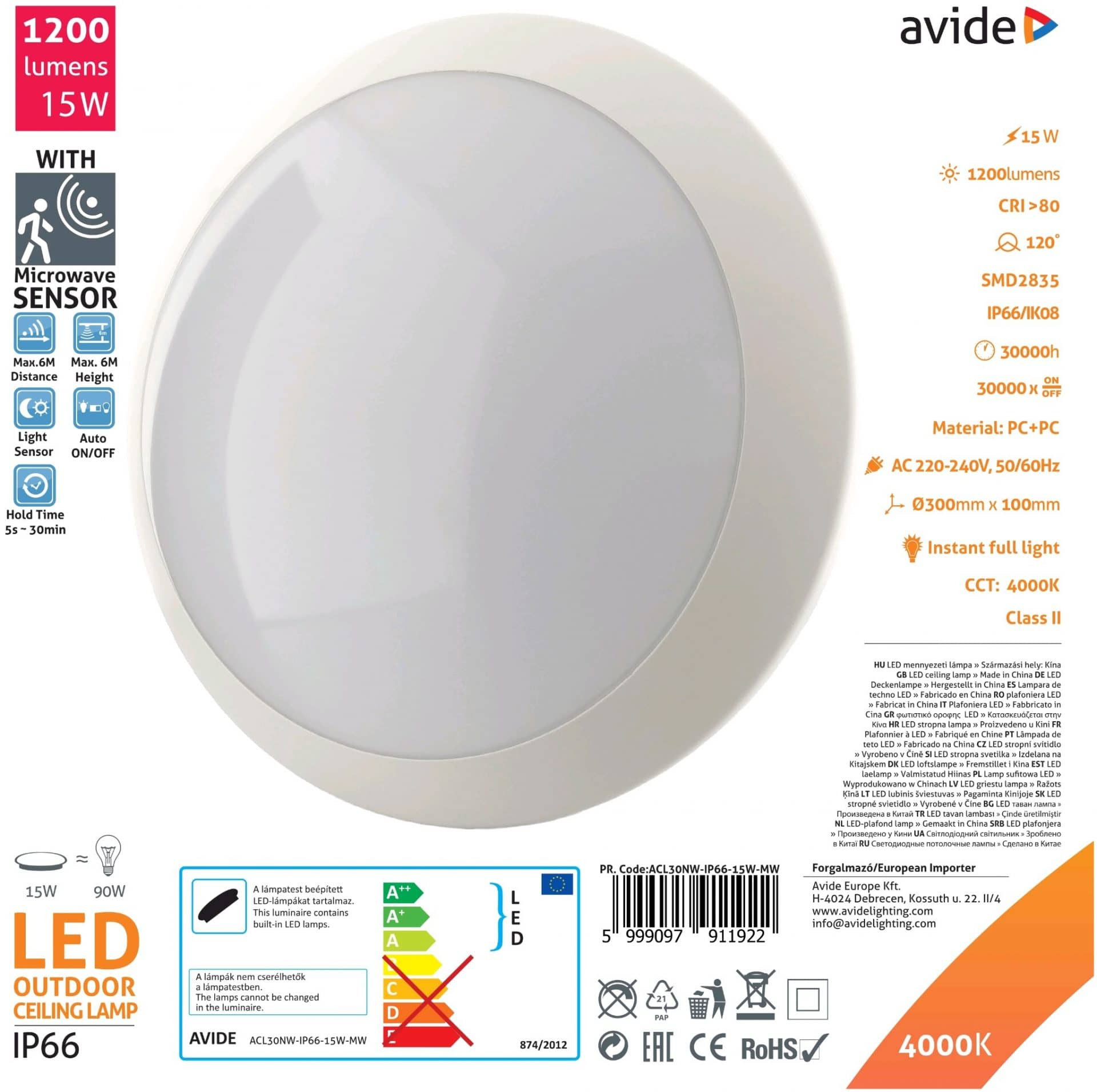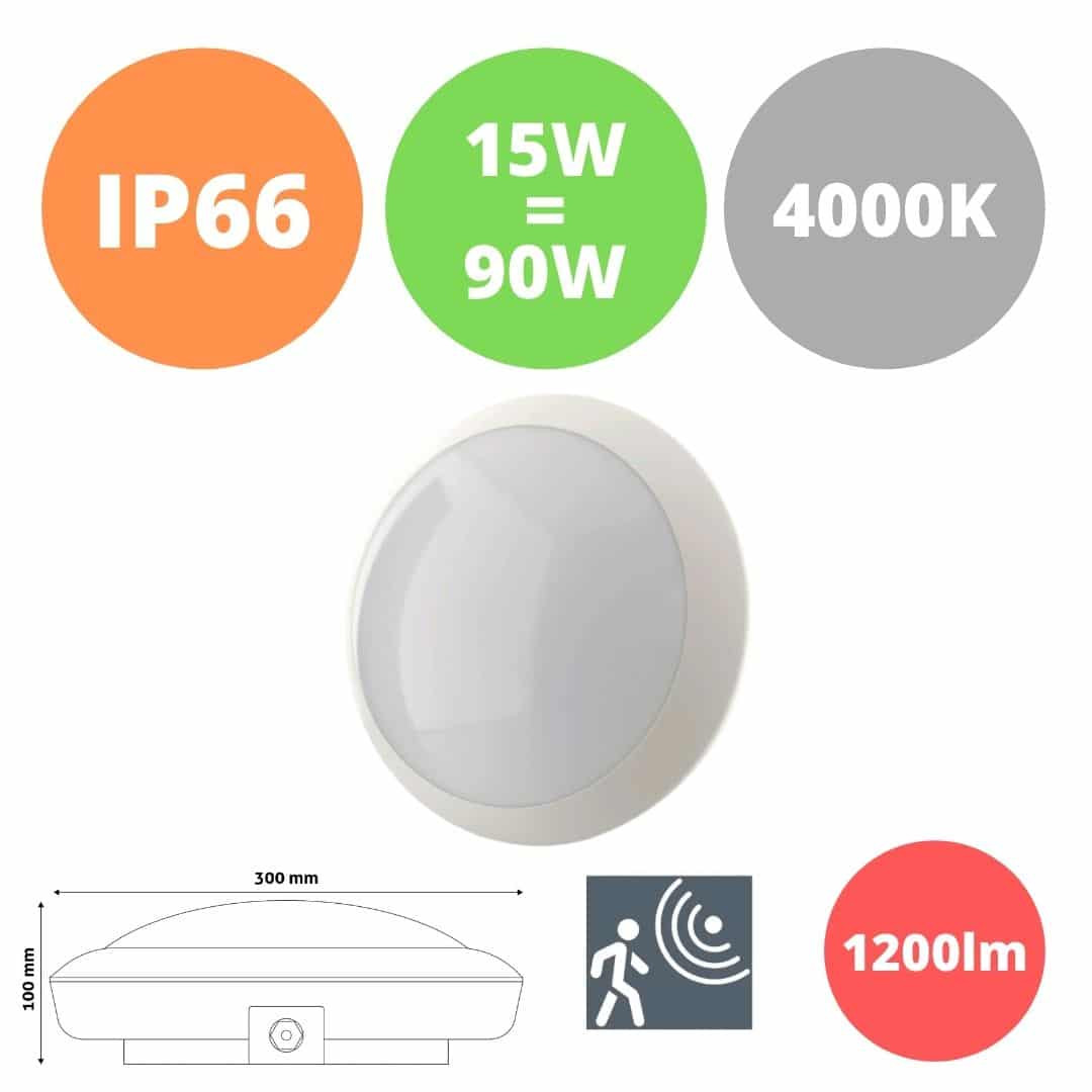 Vodotesna LED plafoniera IP66 15W nevtralno bela 4000K z mikrovalovnim senzorjem gibanja