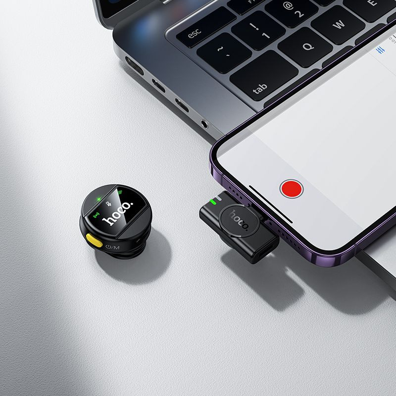 Brezžični mikrofon Hoco s sprejemnikom Lightning je kompaktna in moderna rešitev za snemanje, pretakanje v živo in spletno klepetanje. Opremljen je s tehnologijo za zmanjševanje šuma ENC in vsesmernim mikrofonom, ki zagotavlja jasen in naraven zvok v vsakem okolju.