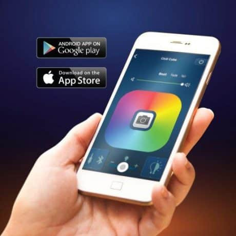 Prenosni nepremočljivi Bluetooth zvočnik je kot nalašč za potovanja, prosti čas ali za zabavo na obali ali na vrtu. Napravo lahko preko aplikacije povežete s pametnim telefonon (iTunes®, App Store ali Google Play Store ™ ) ter izbirate med različnimi načini osvetlitve glede na razpoloženje glasbe. Aplikacija je združljiva z Apple iOS 10 ali novejšo verzijo ter Android 4.3 ali novejšo verzijo. Naprava deluje samo z Bluetooth 4.0 napravami. Napravi je priložen tudi daljinski upravljalnik.