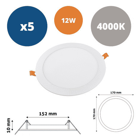 5x ALU vgradni LED panel okrogli 12W nevtralno beli 4000K