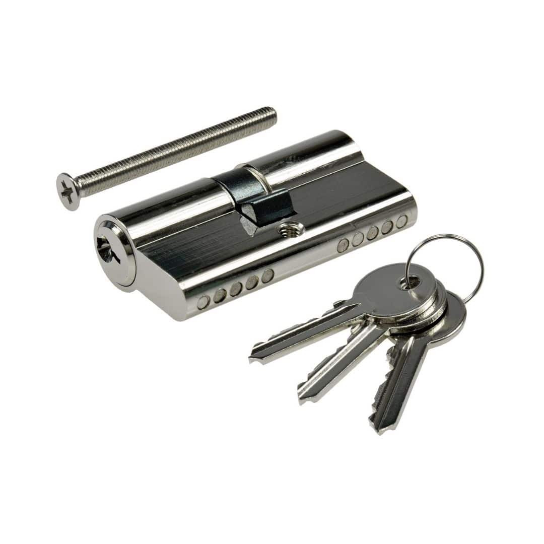 Kakovosten profilni varnostni zaklepni cilinder s 3 ključi. Številne poceni ključavnice imajo le 4 različne položaje, zato je ključe relativno enostavno podvojiti. Naši zaklepni cilindri imajo vsak 8 položajev, kar ima za posledico na sto tisoč različnih ključev.
