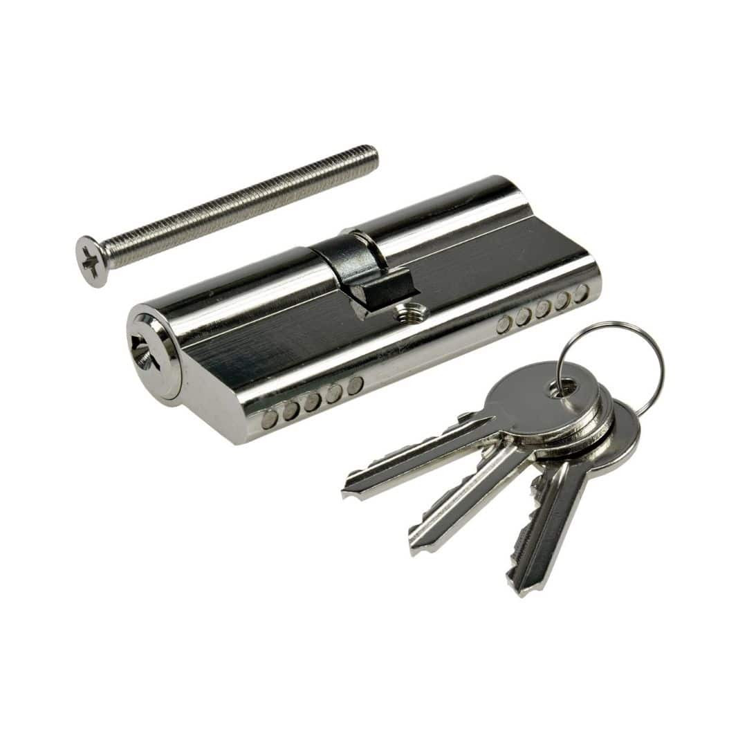 Kakovosten profilni varnostni zaklepni cilinder s 3 ključi. Številne poceni ključavnice imajo le 4 različne položaje, zato je ključe relativno enostavno podvojiti. Naši zaklepni cilindri imajo vsak 8 položajev, kar ima za posledico na sto tisoč različnih ključev.