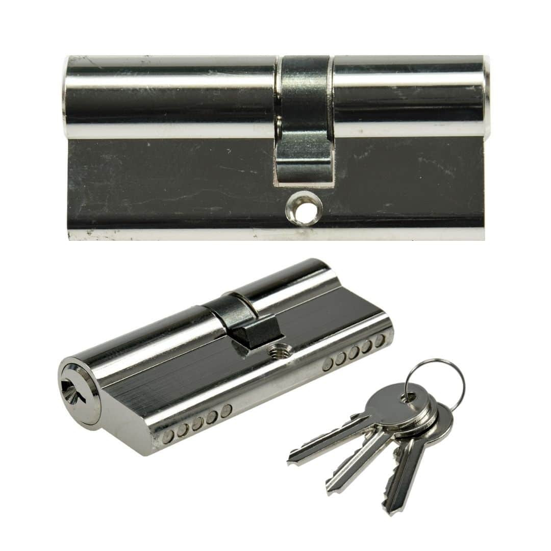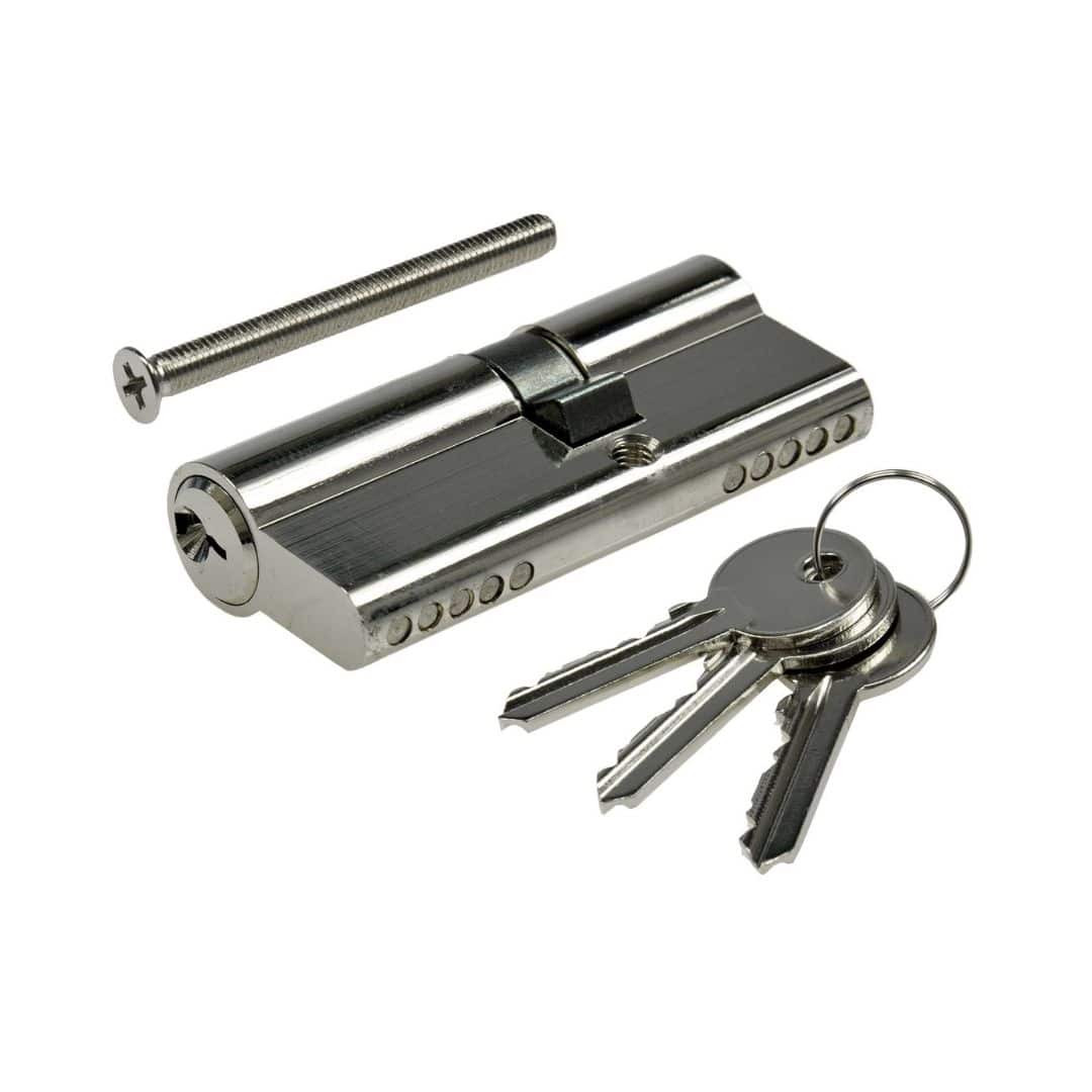 Kakovosten profilni varnostni zaklepni cilinder s 3 ključi. Številne poceni ključavnice imajo le 4 različne položaje, zato je ključe relativno enostavno podvojiti. Naši zaklepni cilindri imajo vsak 8 položajev, kar ima za posledico na sto tisoč različnih ključev.