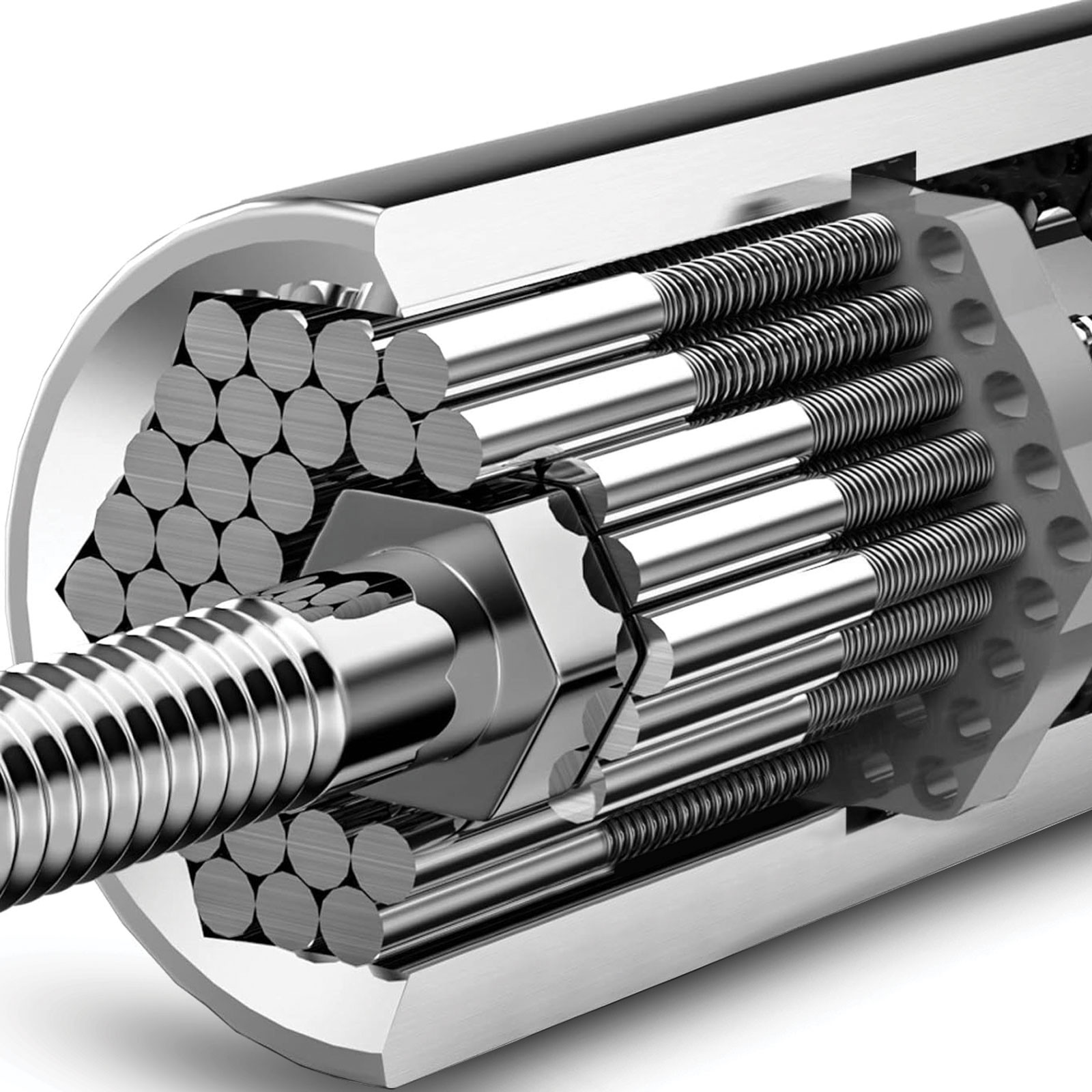 Univerzalni nasadni ključ, ki je sestavljen iz 43 vzmetnih vložkov iz kaljenega jekla, ki se zarijejo in se takoj prilagodijo obliki predmeta, ki ga vijačimo. Odlična izbira za privijanje kvadratnih in šestrobih matic, kavljev, očesnih vijakov, krilatih vijakov in matic. Univerzalna nasadna glava se lahko uporablja za zamenjavo nasadnih glav velikosti 8 - 21mm.