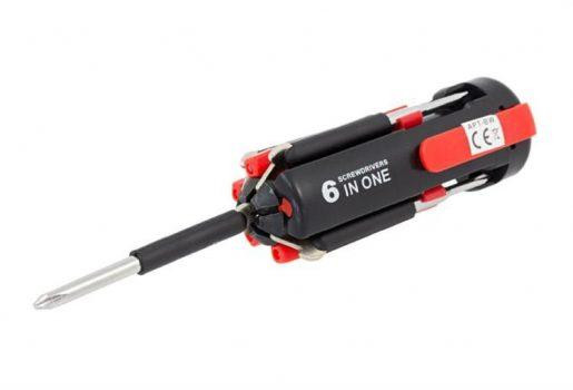 Multifunkcijsko orodje, ki ga potrbuje vsak domači mojster, saj njegova majhnost omogoča, da je vedno pri roki v vaši delavnici. Udoben oprijem zagotavlja trden prijem tudi z mokrimi rokami. Ima vgrajeno LED svetilko, ki jo napajata 2 AAA 1.5V baterije (nista priloženi), kar bo olajšalo delo v temi. Orodje vsebuje 5 izvijačev različnih velikosti (2 plošata + 2 križna + 1 torx) dolžine 10cm.