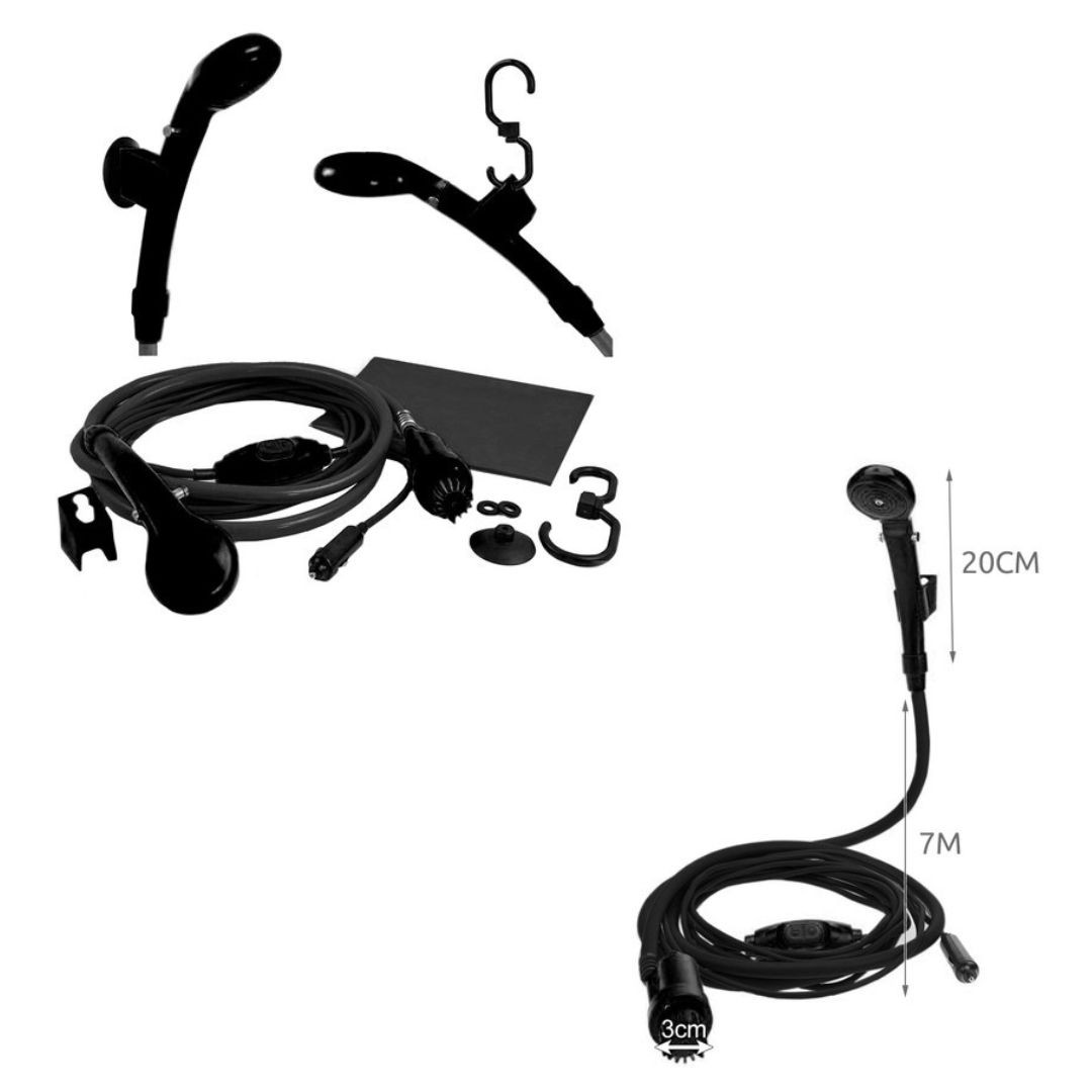 Ročka ima gladko regulacijo pretoka vode. Samo premaknite regulator na pravo mesto, da prilagodite tok svojim individualnim zahtevam - skoraj kot doma. V kompletu je držalo s priseskom, ki omogoča priročno namestitev na avto, okno ali drugo gladko površino. Dodatno je v kompletu še dvojni kavelj, ki omogoča namestitev ročke na drevo, mrežo ipd. ali pritrditev brisače ali kozmetične torbice. Prha se ne uporablja le za umivanje telesa. Ljudje, ki se odpravijo na kampiranje, bodo zagotovo cenili njeno funkcionalnost. Samo priključite jo na avtomobilski vtič in že se boste lahko udobno tuširali. Številni kampi ponujajo prhe, kjer je pretok vode tako nizek, da običajno tuširanje traja precej dolgo, zaradi česar so čakalne vrste ogromne! Pri naši prhi lahko prilagodite moč curka. Izdelek vam bo omogočil tudi pomivanje posode, izpiranje avtomobila, pranje napihljivih igral in številne druge aktivnosti. V kompletu je torba z vrvico, ki se lahko uporablja kot rezervoar za vodo ali kot prevleka.