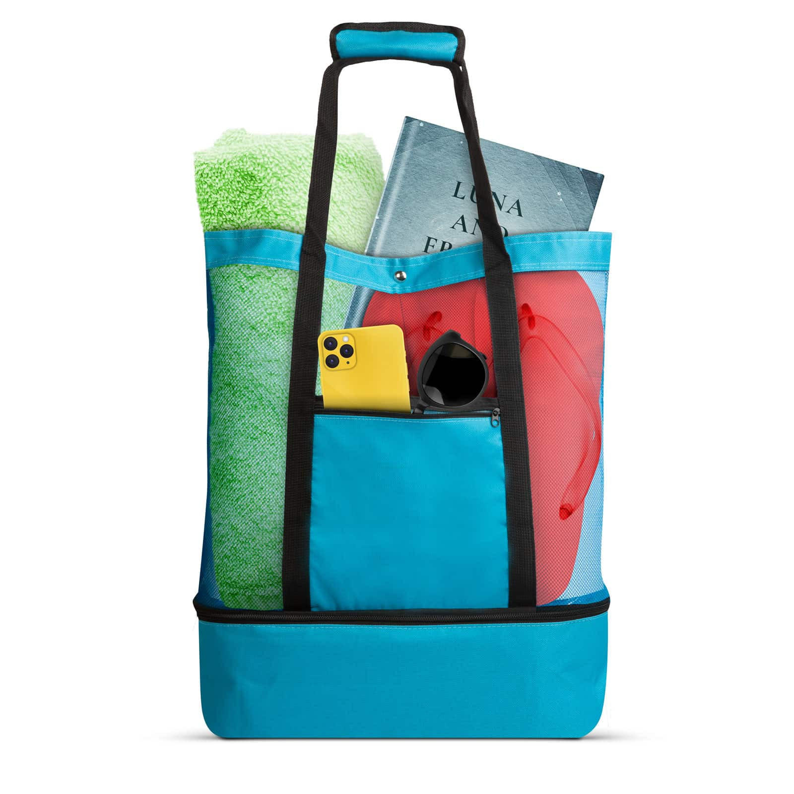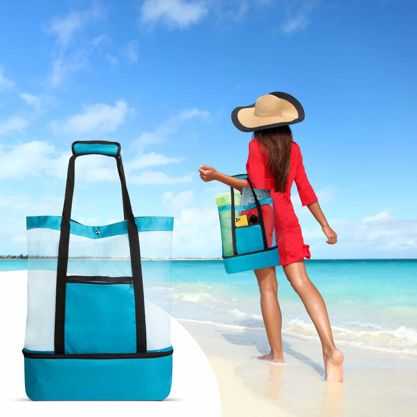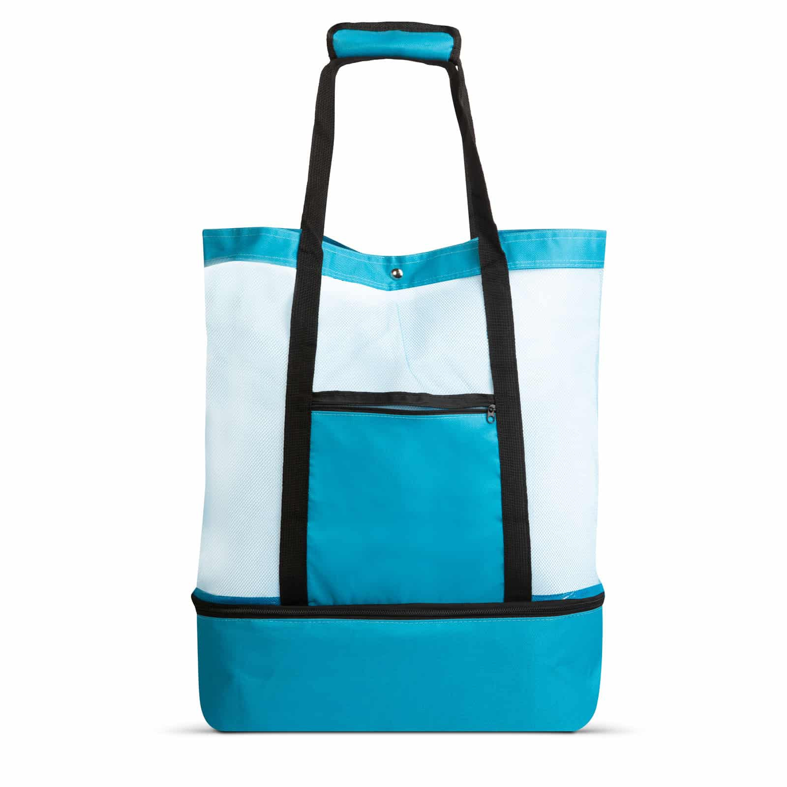Torba je paktičen dodatek v toplih poletnih dneh. Uporabite jo lahko za izlete na plažo, pohode, počitnice, kopanje ali preprosto priložnostno nakupovanje. Zgornji mrežasti predal ima veliko prostornino, tako da lahko vzamete vse, kar potrebujete. Žep s spodnjim termo slojem je primeren za hlajenje na primer pijač in sendvičev.
